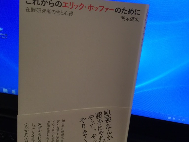 下の写真は、読んでいる最中の本。『これからのエリック・ホッファーのために—在野研究者の生と心得』(東京書籍、2016年、1500円& 税金)だ。