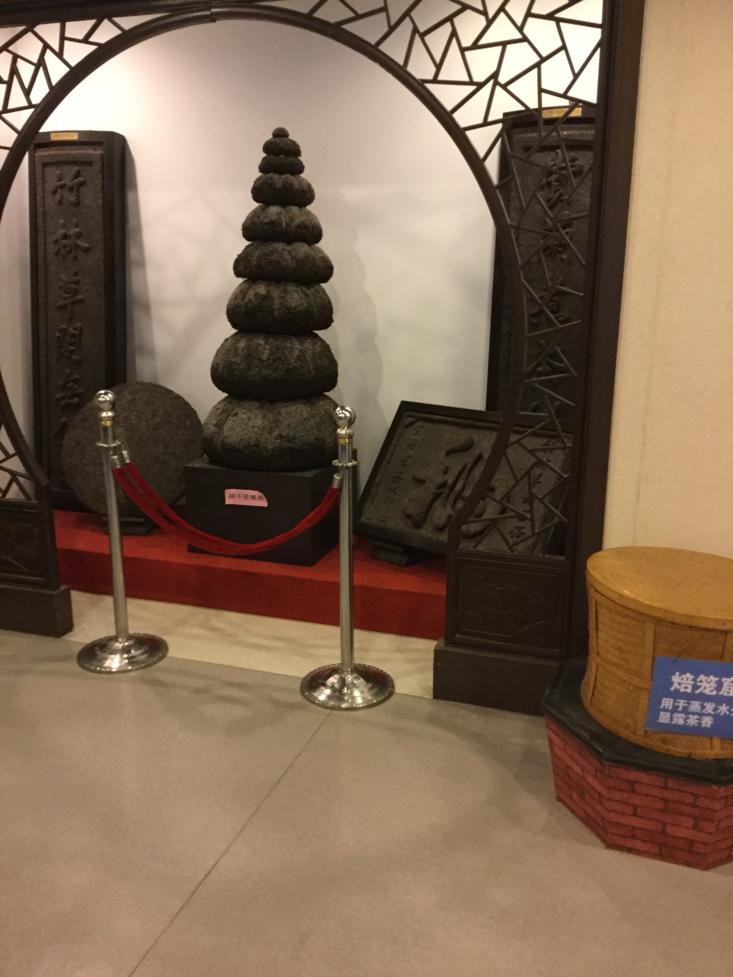 中国のお茶って、固められたものもある。下の写真の塔とか看板とか、これみなお茶である。おもろい。