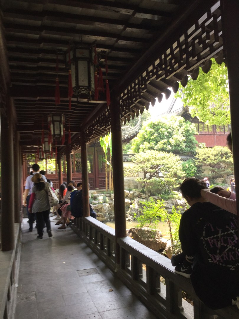 (14)上海の観光地で最も人気があるのは、豫園。よえん。ユーユアン。400年前の豪商が作った豪壮な屋敷と庭園が今は国家財産となり入場料を稼ぐ観光施設になっている。いかにも中国風建築であり、庭園であり、面白い。