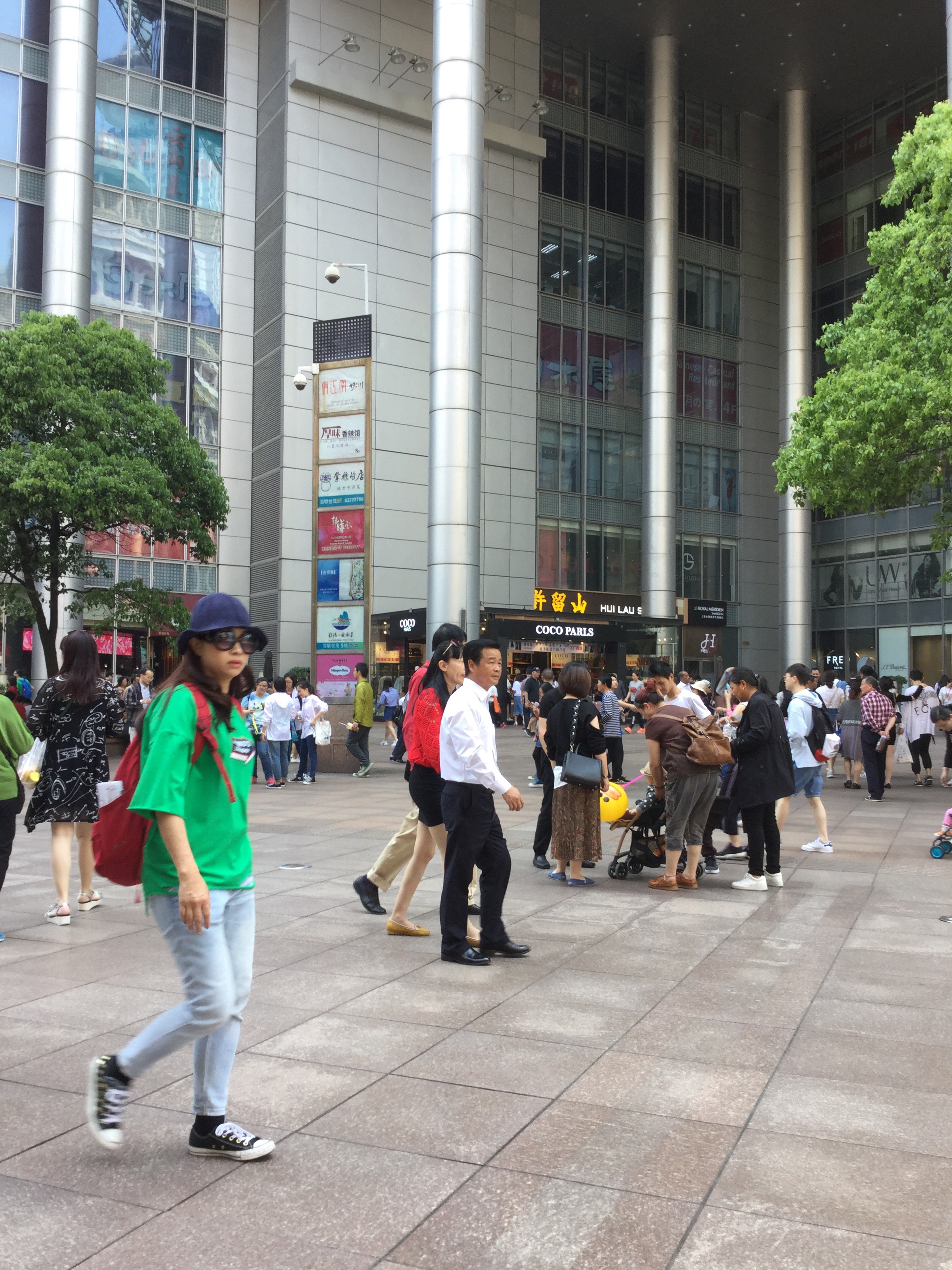 (16) 5月1日がメーデーで労働者の革命を成し遂げた共産党政権下の中国では祝日である。だから、4月29日土曜日から三連休なので、29日も30日も上海はすごい人出であった。30日は、ホテルをチェックアウトして、スーツケースをホテルに預けた。それから、上海博物館に行くつもりだったが、この人出の真ん中に入ってみたいと思い、南京東路を抜け、人民広場まで歩くことにした。やはり、歩かないと街はわからない。南京東路は毎日が歩行者天国である。