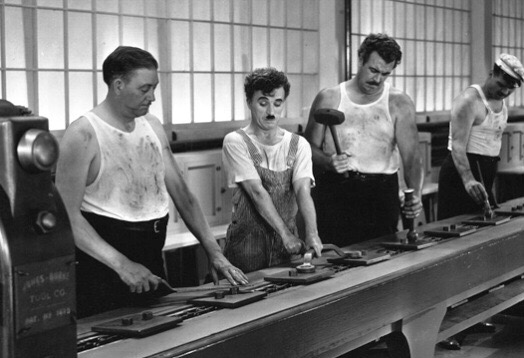 (32)これを徹底させたのが、フォード生産方式。チャップリンの「モダンタイムズ」だ。人間を歯車化させる労働形態と批判されるが、効率は非常にいいし、製品の出来のバラツキがなくなる。
