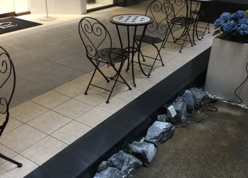 かく言う私も、ウロチョロと、そのビルの「椅子とテーブルが置かれている場所」をチェックして、iPadで撮影している暇そうな初老のオバちゃんである。