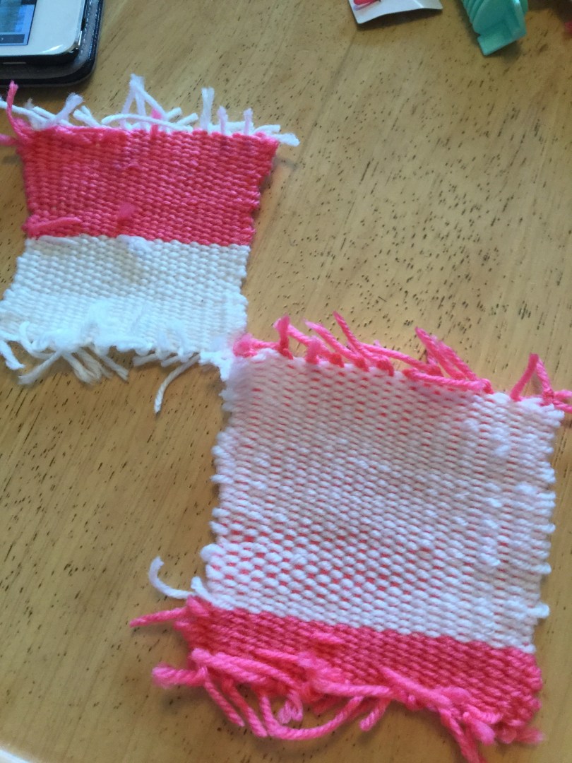 それと同じで、手織り初体験で作ったコースターは、可愛い。