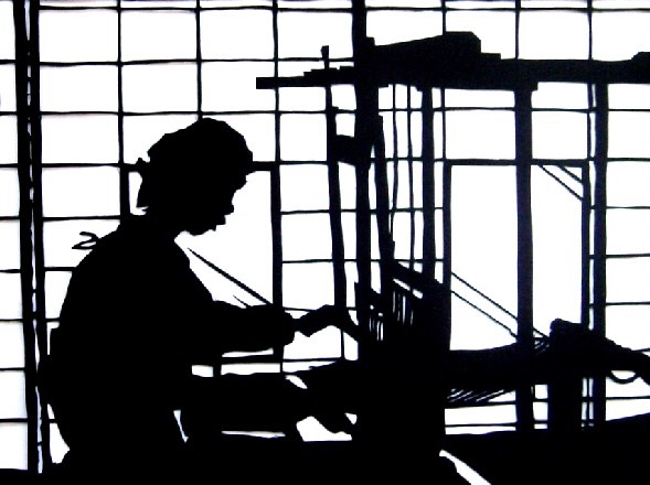 「夕鶴」の鶴の精じゃないけれど、女性が腰掛けて機織り機でパッタンパッタンやっているイメージというものは、非常に郷愁をくすぐる。