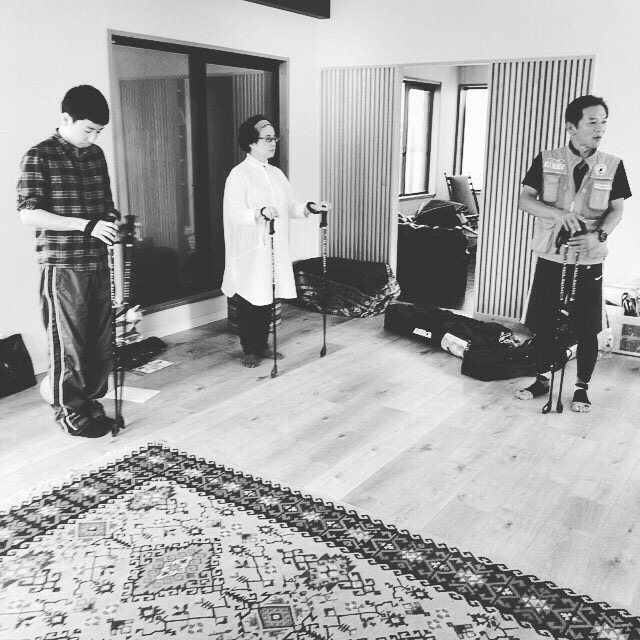 24日のノルディックウオーキング講習会と、その後の「舌はがし勉強会」を企画運営なさった平井幸祐氏が、踏んづけられている。