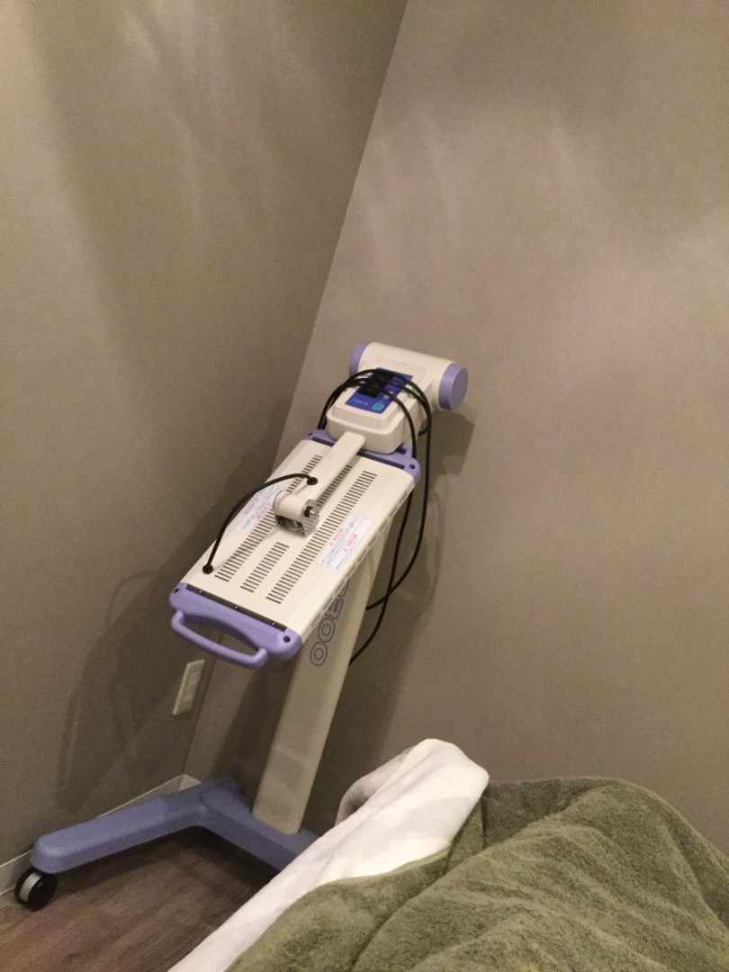 ところで、「こもの鍼灸院」の施術室にあるこの機械は、なんでしょうねえ?