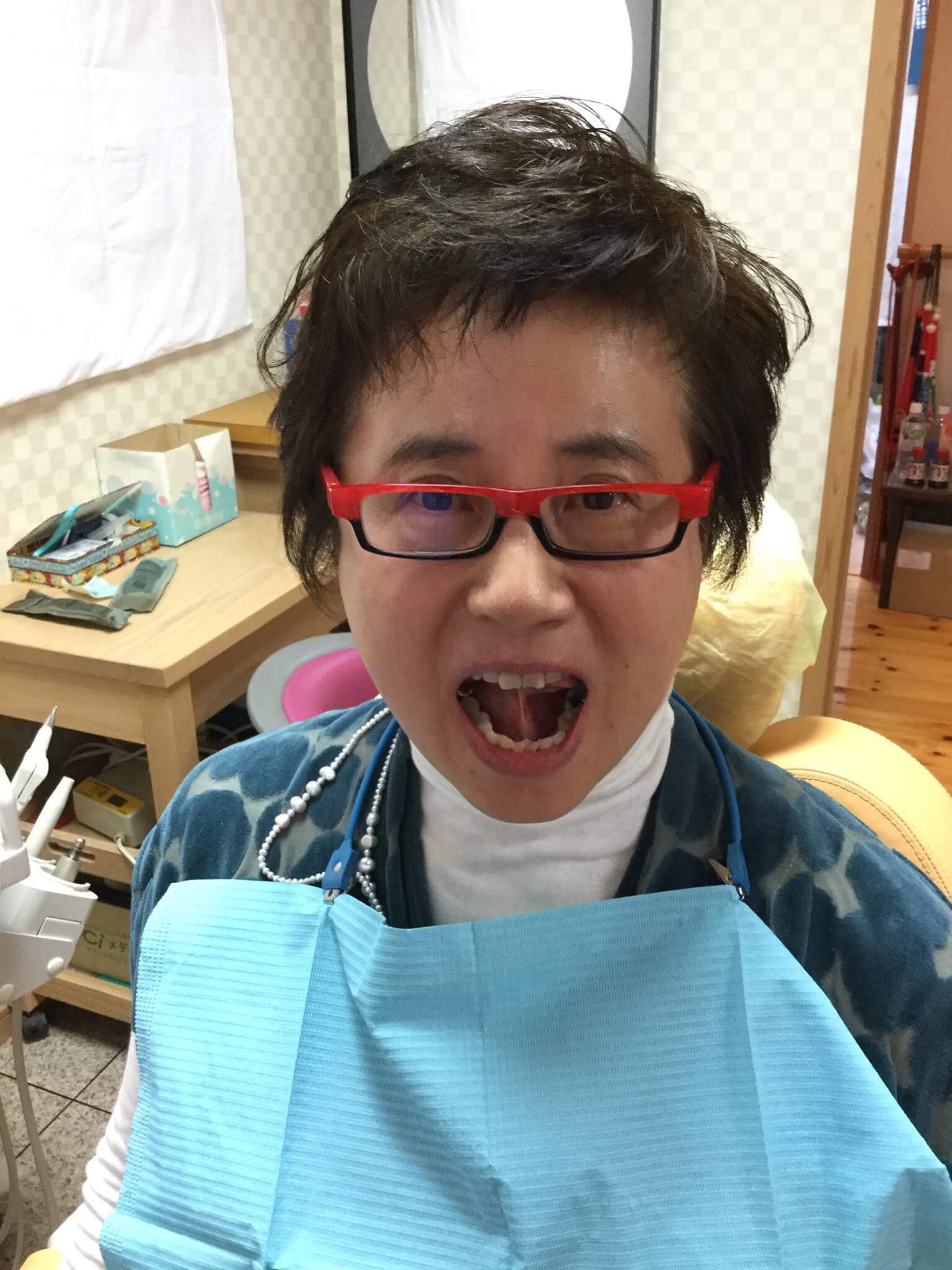 この写真は歯科室で心子先生に撮影していただいた。