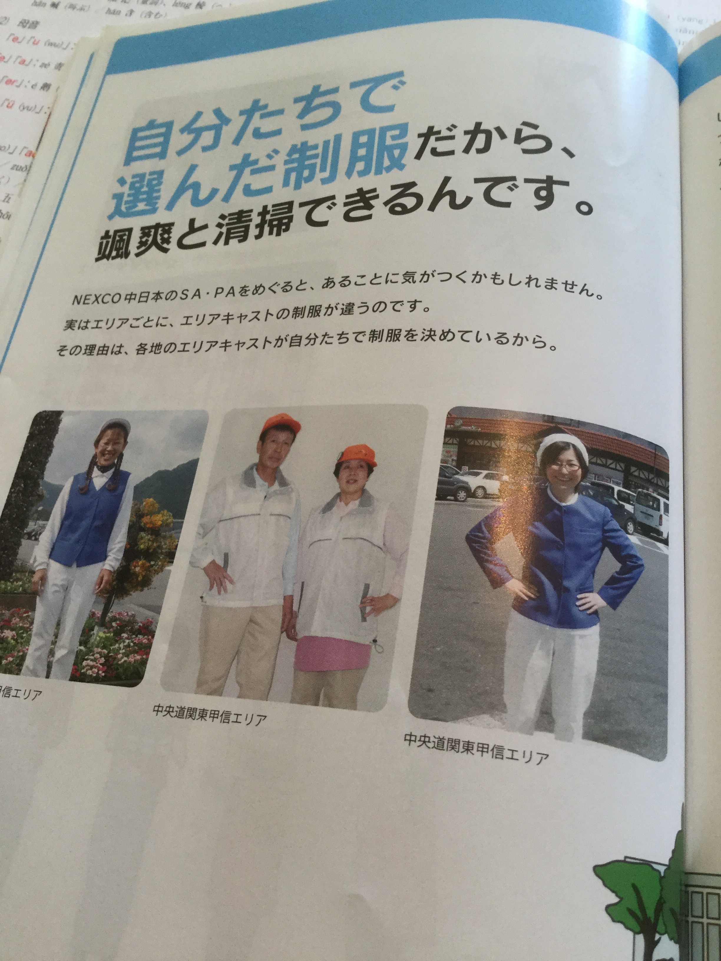(1)まず、NEXCO中日本は、トイレ美化の主人公を清掃スタッフと位置づけるために、清掃スタッフのお洒落度を上げた!