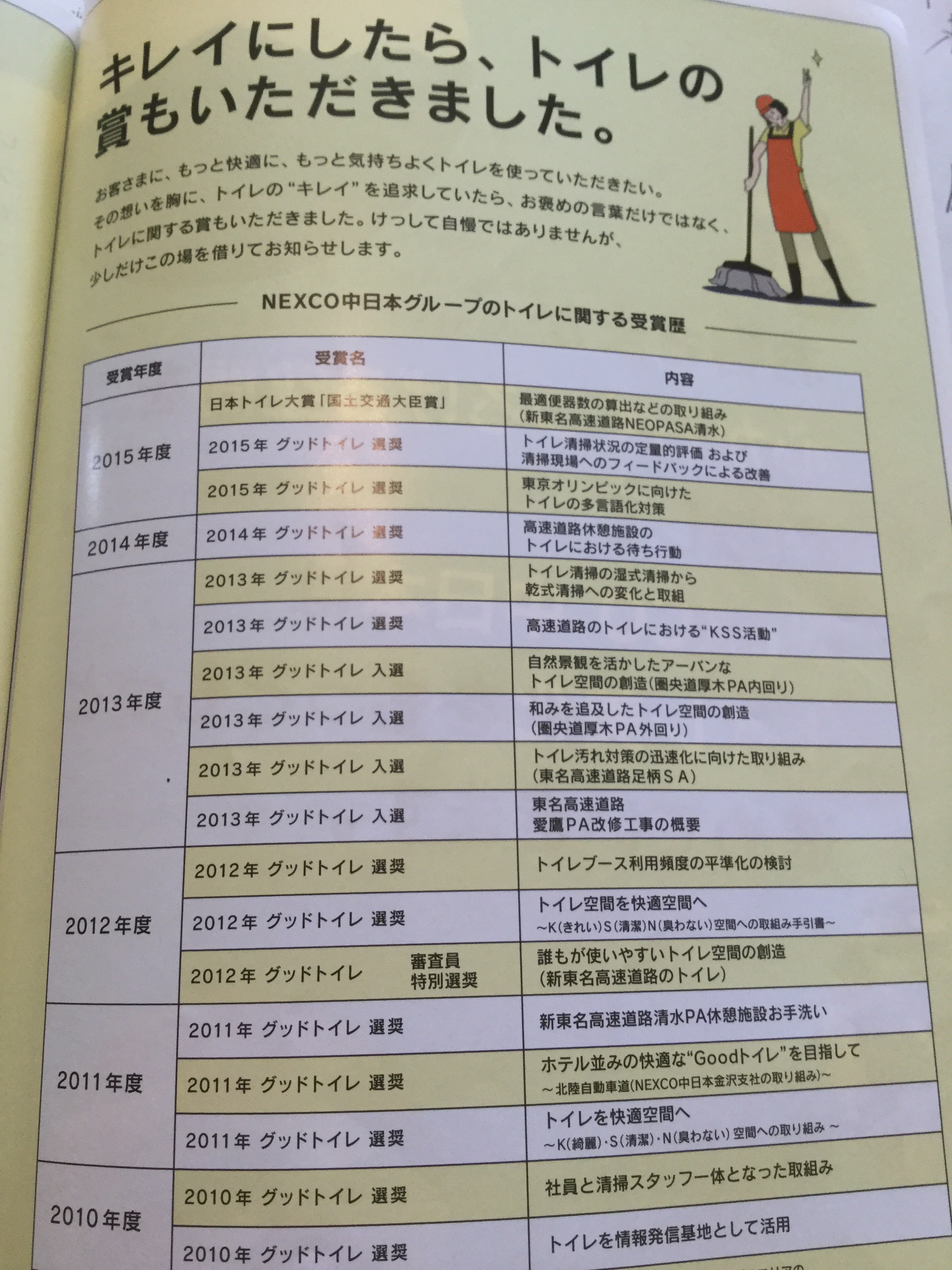 さて、このように、日本のトイレの高いスタンダードを作り維持し、トイレの世界基準というものを向上更新することに影響を与えつつある NEXCO中日本である。