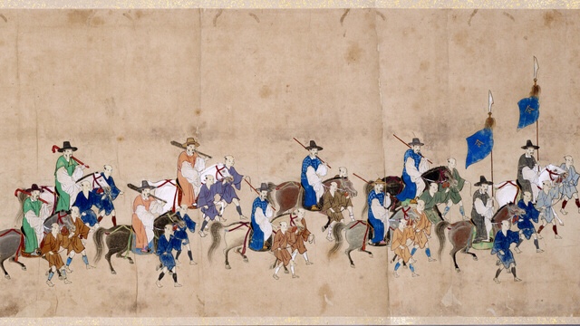 当時の李朝朝鮮から来た使節はイケメンぞろいで、行列に若い娘たちがきゃあきゃあ騒いだそうだ。