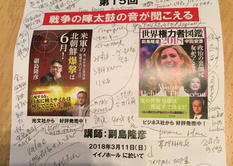 今日は、3月11日日曜日に東京は霞ヶ関のイイノホールで開催された「副島隆彦の” 予言者” 金融セミナー第15回」について書く。