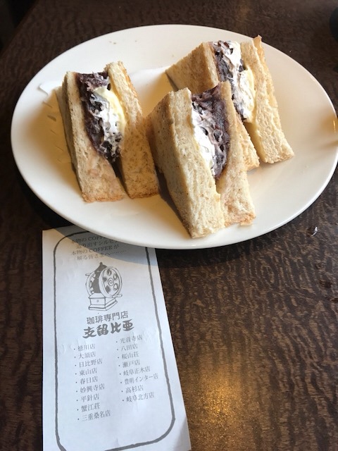 「コメダ珈琲店」の小倉トーストと違って、ここの小倉トーストは最初から餡とバターが塗って挟んである状態でサーブされる。