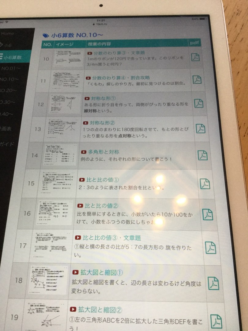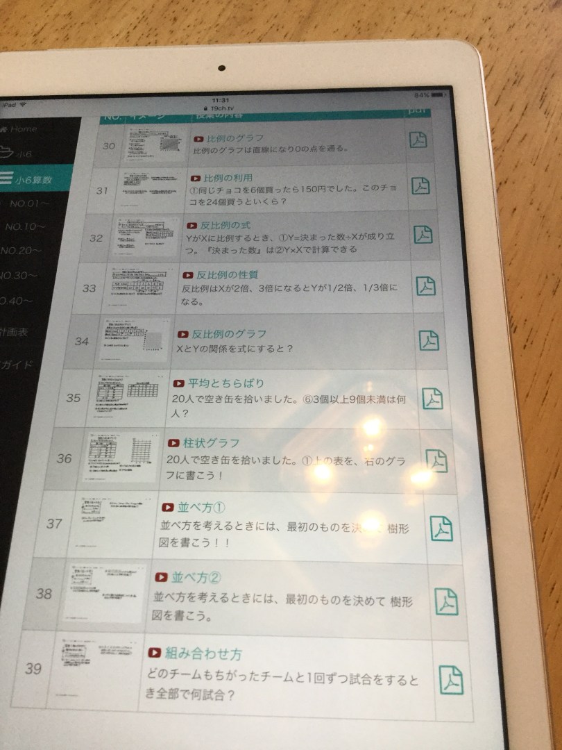 ということで、数日前から就寝前の1時間を、「はいち先生」の6年生の算数授業動画を視聴して勉強し直している。