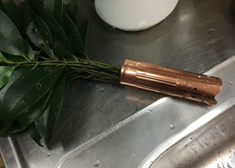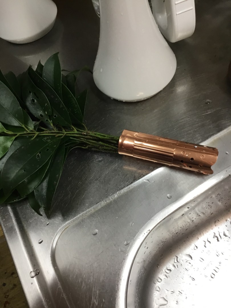 榊をまとめてこの銅の筒に入れればいいので、榊がばらけません。