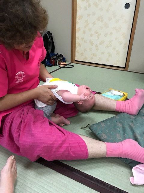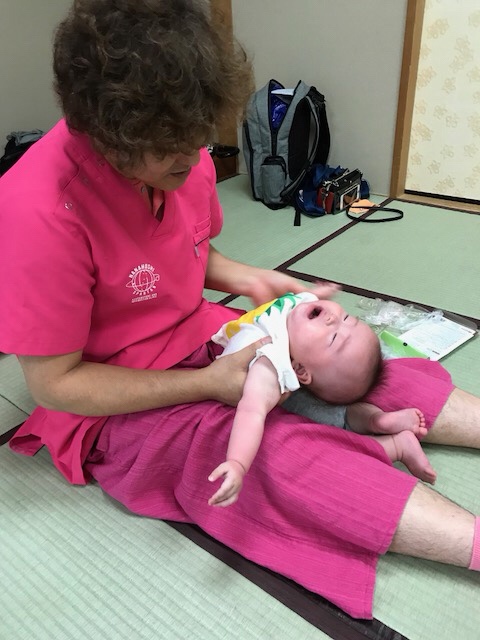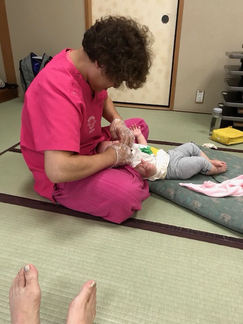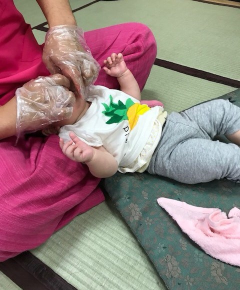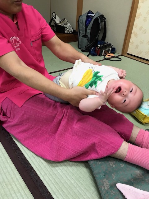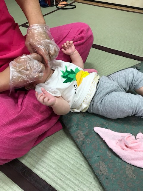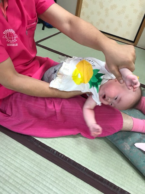 舌はがしを終えたあとは、赤ちゃんの身体を柔らかくする赤ちゃん整体。