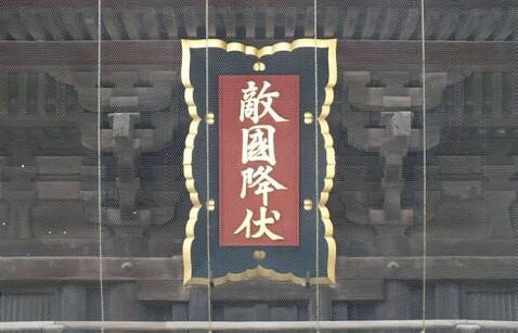 元寇のときに、亀山上皇が「敵国降伏」を祈願したんで、今でも神門に「敵国降伏」の額が掲げられている。