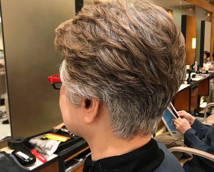 「まだ、綺麗なプラチナヘアになるには時間がかかるから、白髪を活かして、元気に見えるようにしましょう!綺麗にするからね!」と川島氏。
