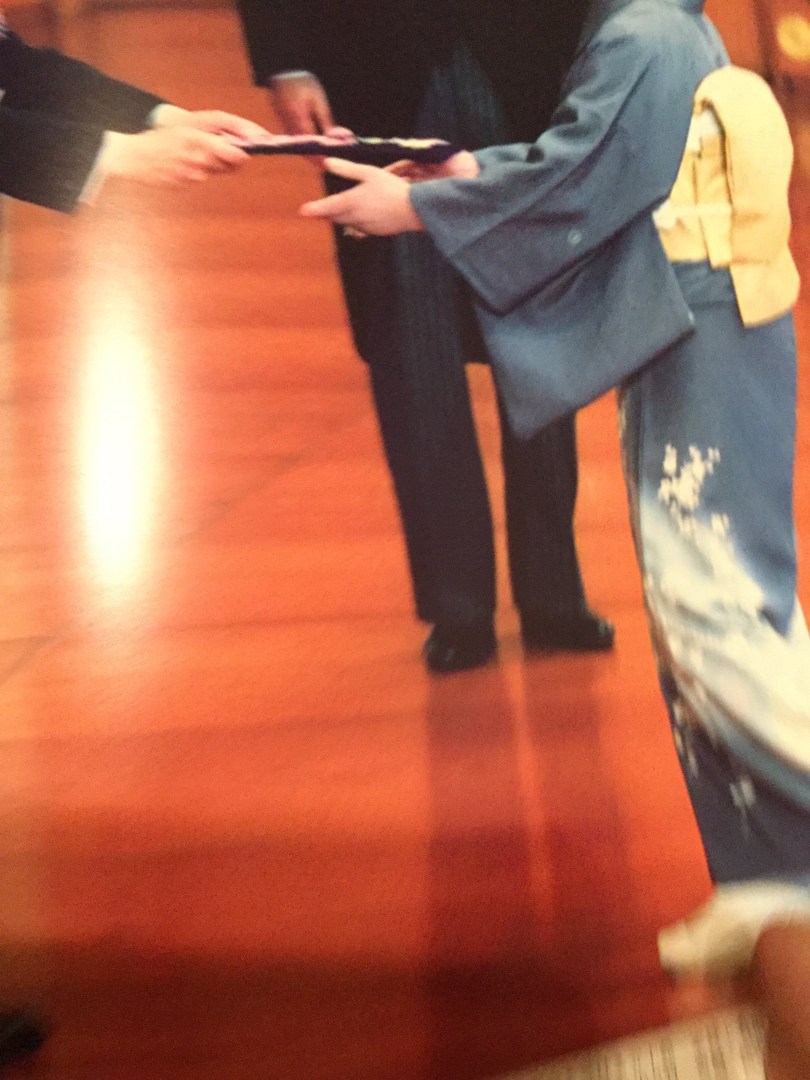 この受章式の時に山田五十鈴さんがお召しになっていた和服をお見立てなさったのが、美馬勇作さんである。
