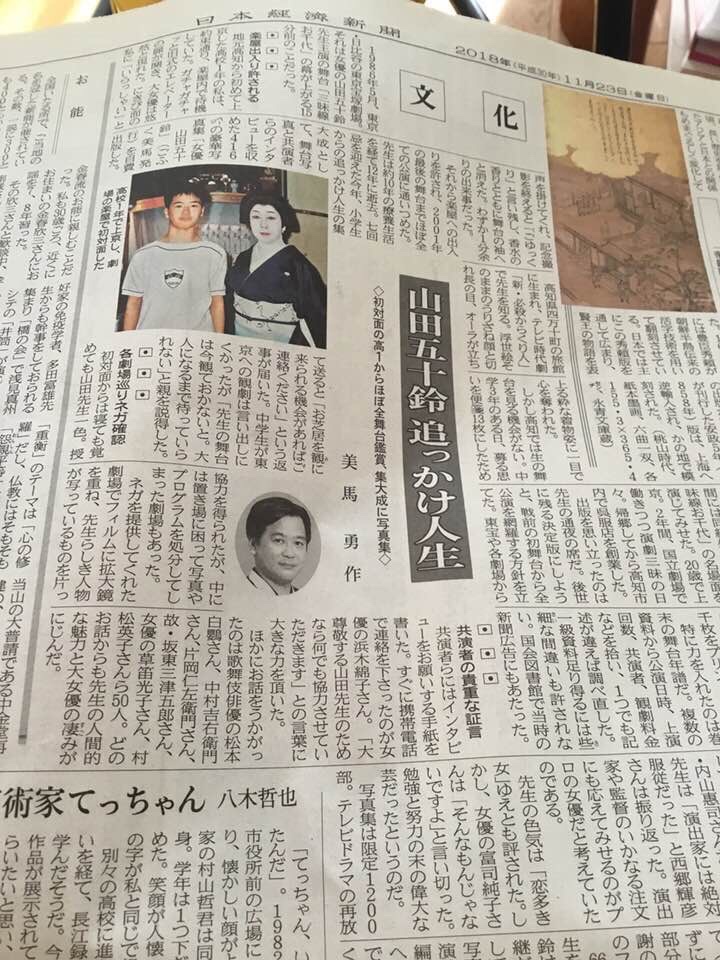 美馬さんは、小学生時代に山田五十鈴さんに一目惚れなさり、中学の時に舞台を見て、高校時代から山田五十鈴さんの舞台をすべて追っかけた方である。