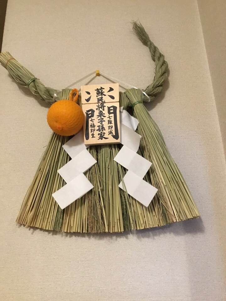 今年の注連縄の板は夫の寝室のドアの上に掲げました。