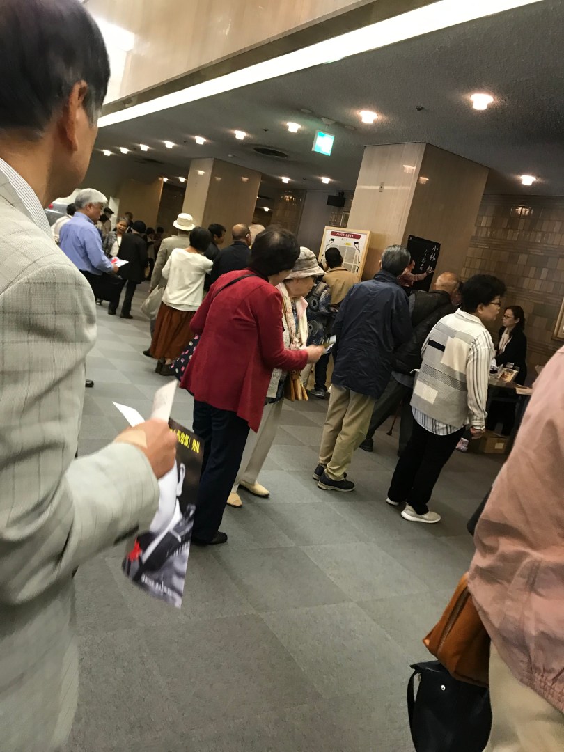 午後1時開場後もロビーにたむろするファンたち。