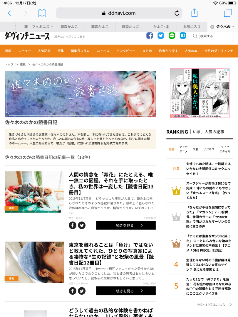 佐々木ののか氏は、noteでも、エッセイを連載しておられる。