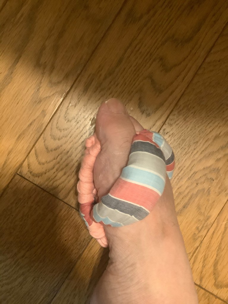 この就寝用足半を履いて寝ると、足先がしっかりキープされ、脚が冷えません。ほんとよん。
