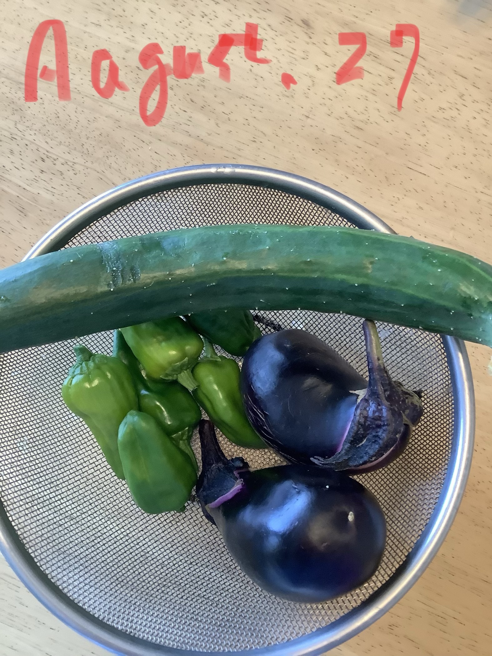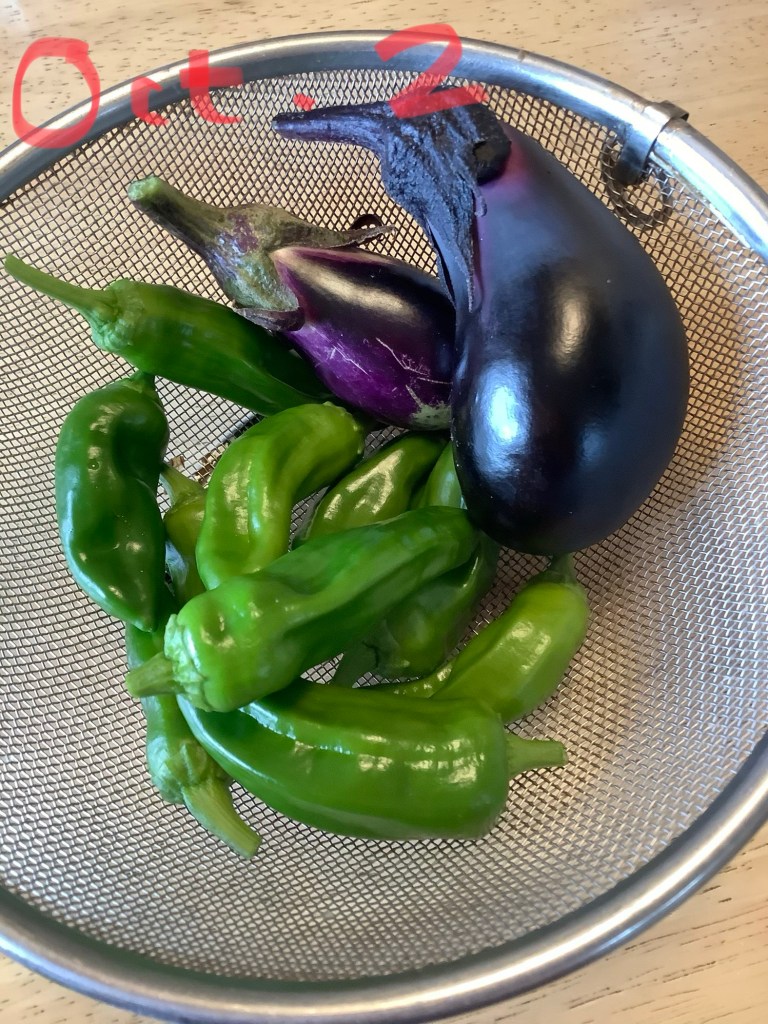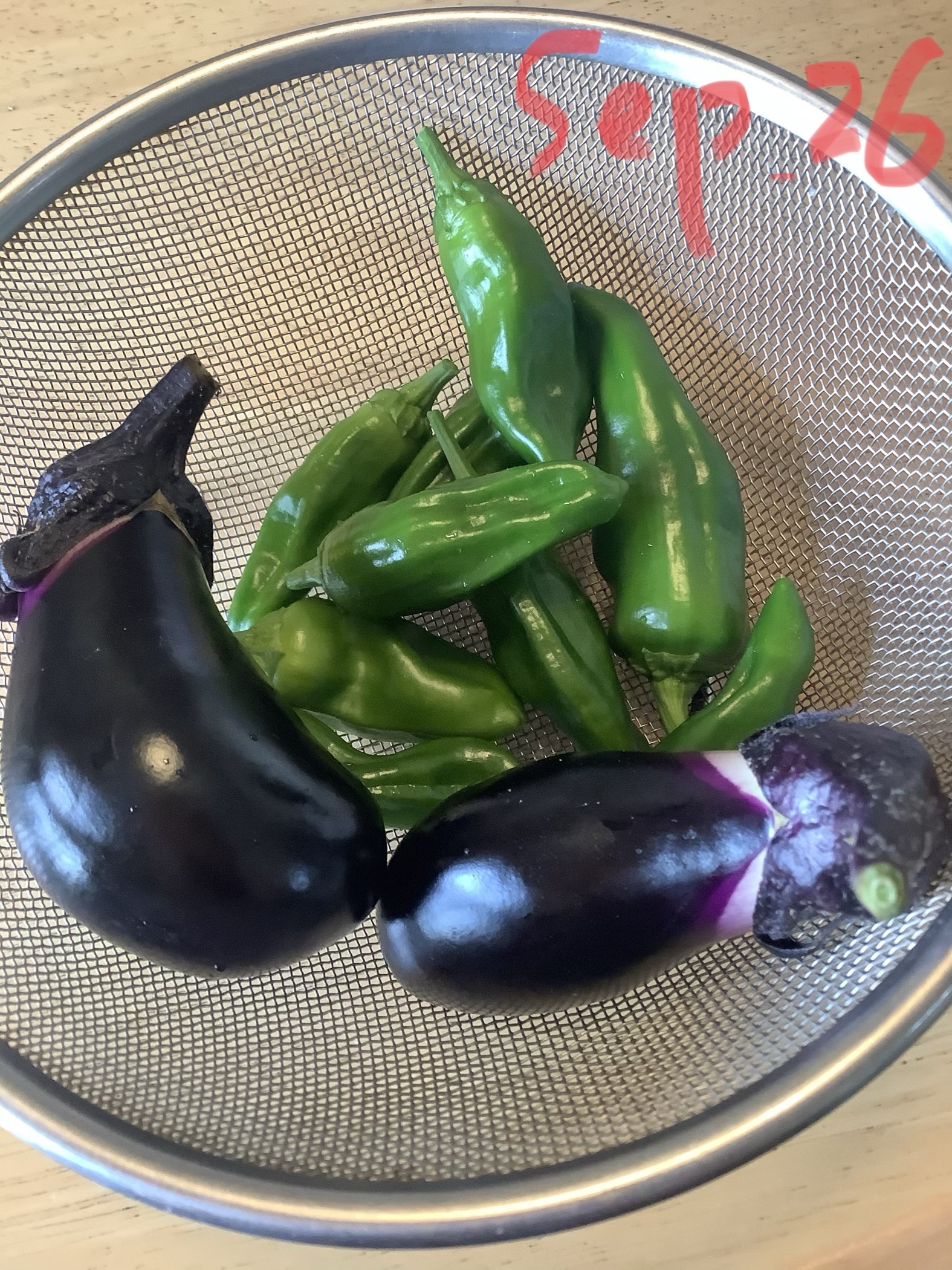 やっぱ、私では無理かなあと落ち込んだのですが、7月に入ったあたりから、じわじわと実がなり始め、特に茄子とピーマンが8月も9月も少ないながらも順調に実りました。