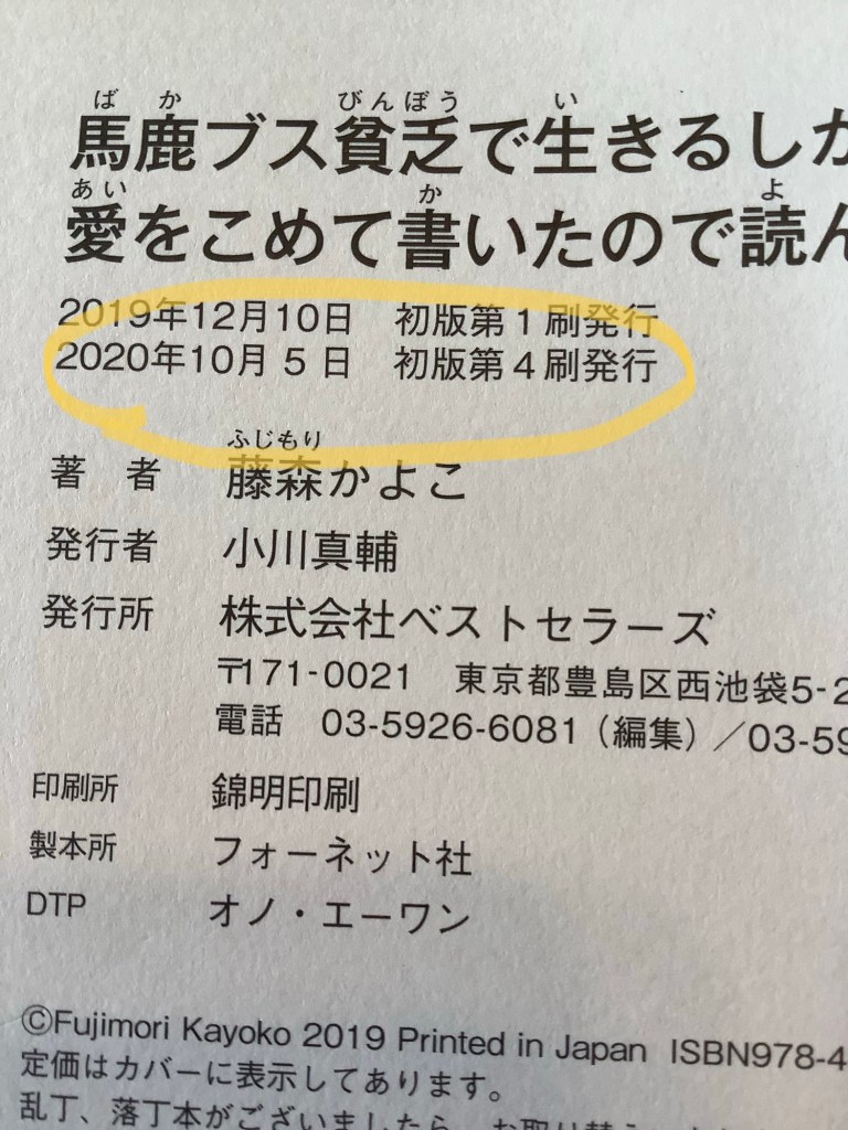 おかげさまで、『馬鹿ブス貧乏で生きるしかないあなたに愛をこめて書いたので読んでください。』が4刷目発行されました!
