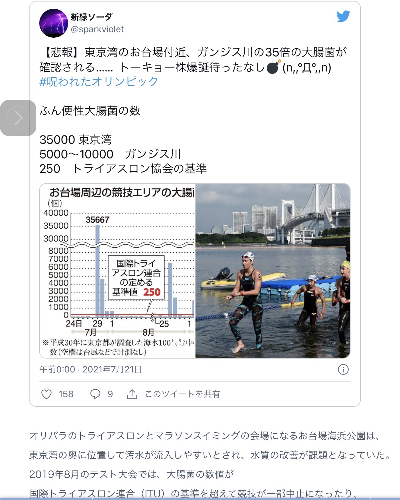 なんで、大腸菌ばかりのトイレ水東京湾で競技なんかしたんだろうか?