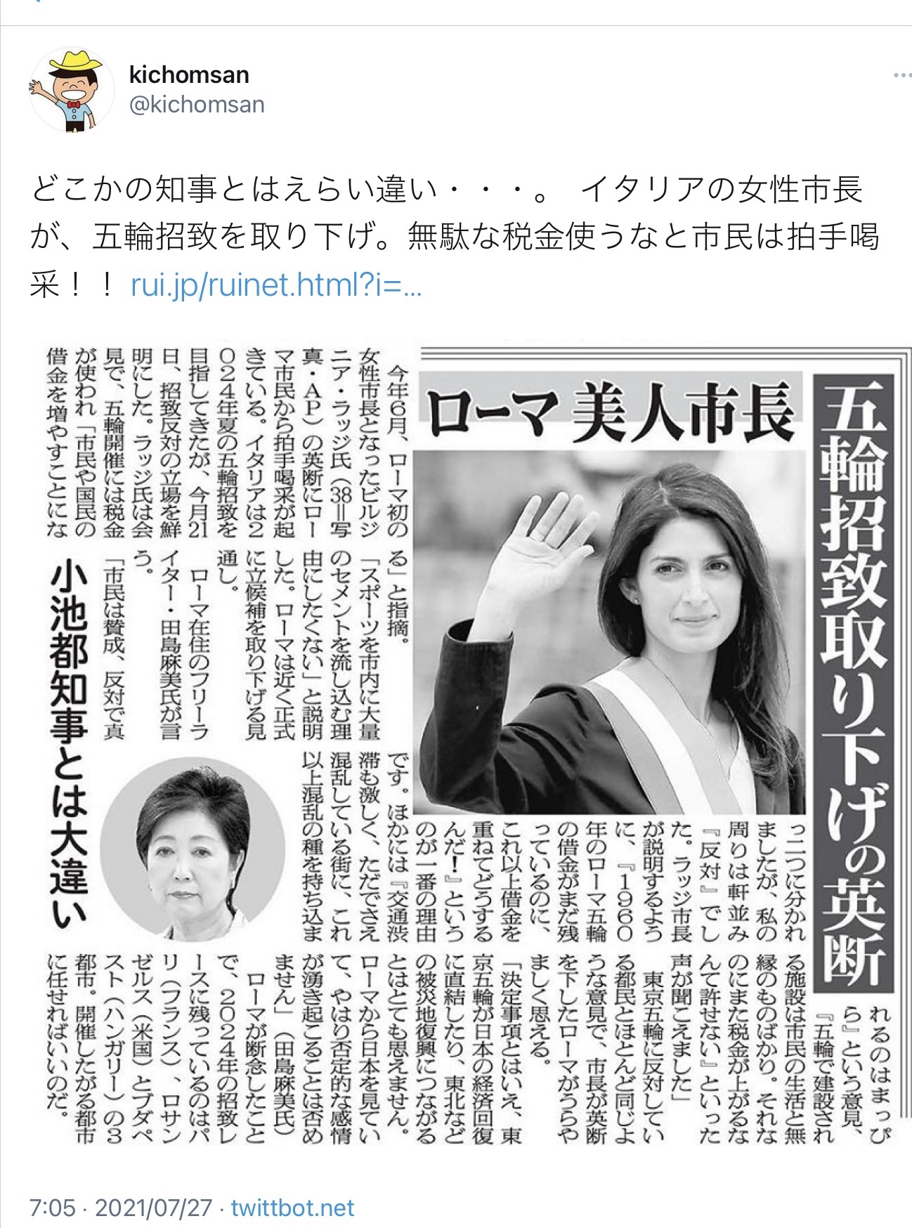 そもそもが全く良識のない都知事だ。ローマ市長の爪の垢でも煎じて飲んでください、と陳腐な決まり文句を言いたくなる。