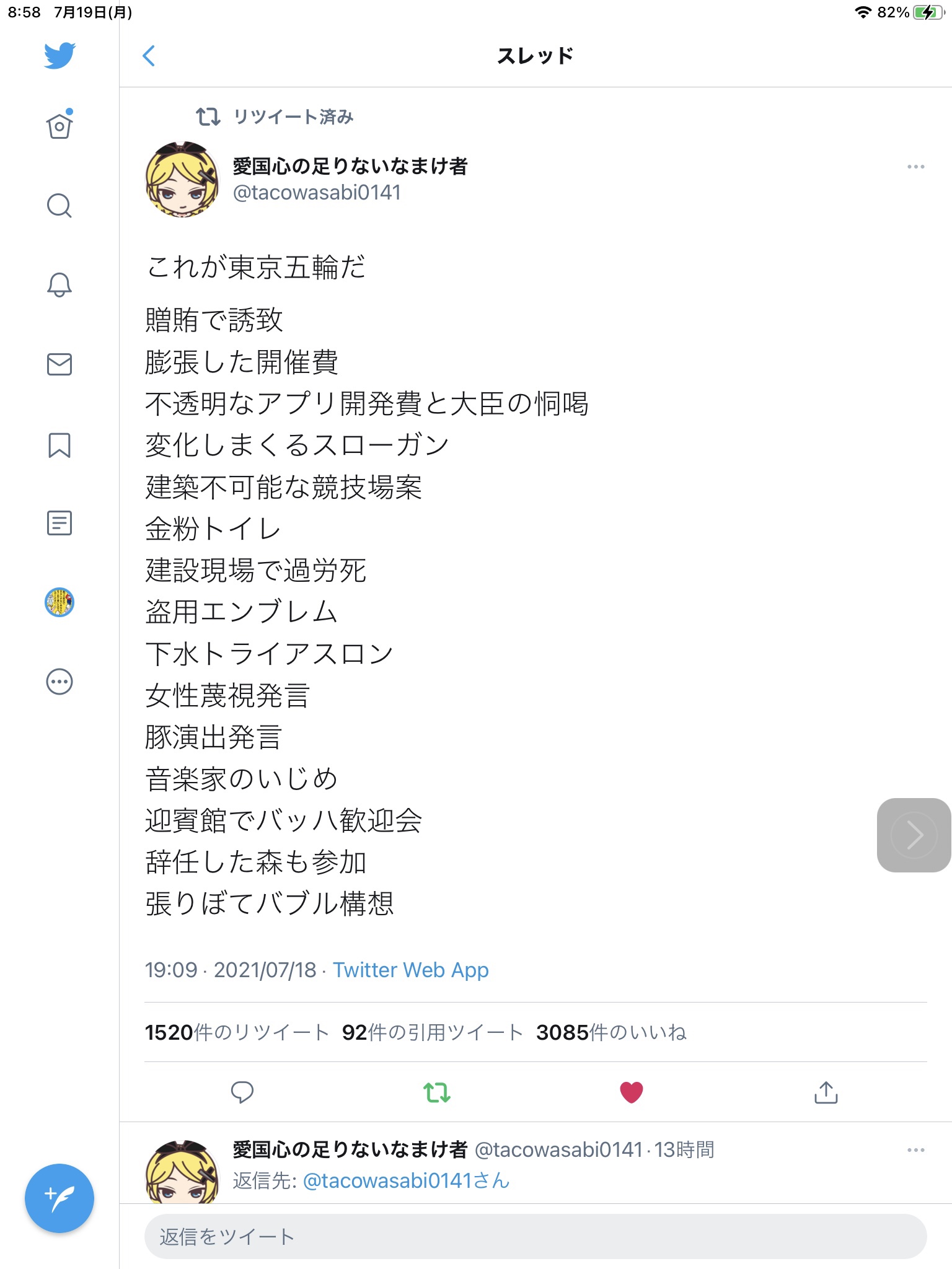 五輪なんかどうでもいい私の胸によぎった不吉な感じ。