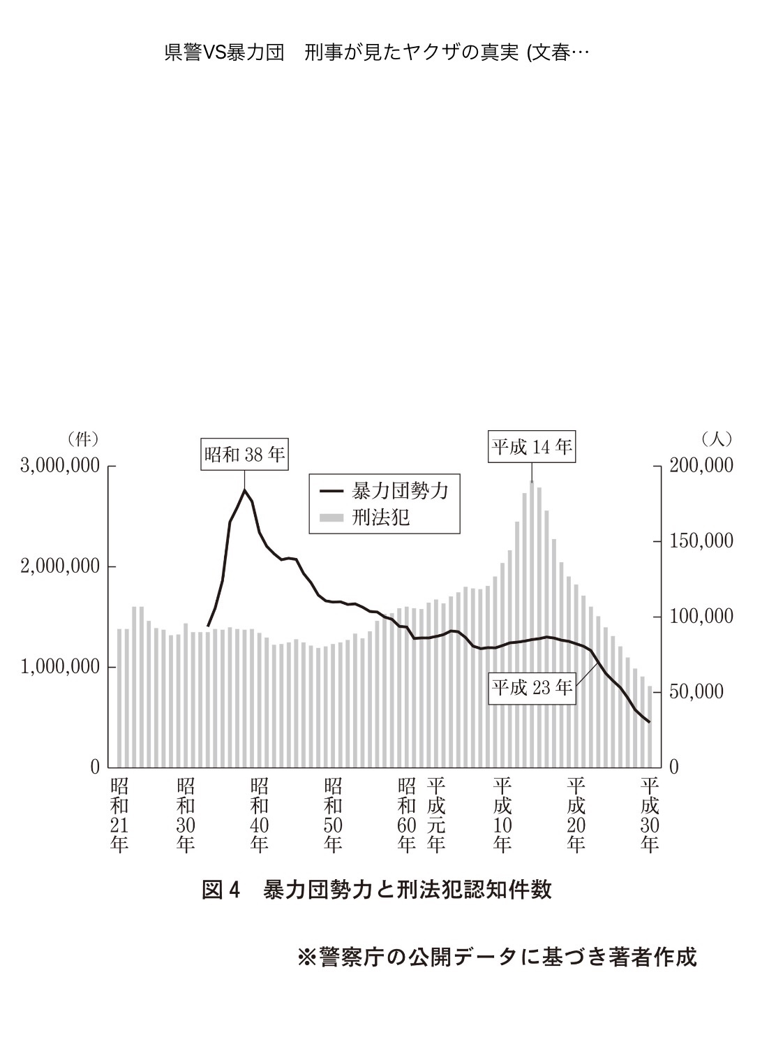 暴力団組員が増えれば刑犯罪件数が減ってるわけでもない。