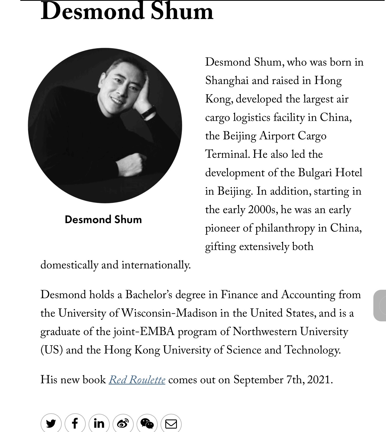 ウイスコンシン大学でファイナンスと会計で学士号をとり、ノースウエスタン大学では……よくわからない。帰国後は、香港大学で科学と技術を専攻しました。2000年代にメキメキと頭角を表した実業家ですね。