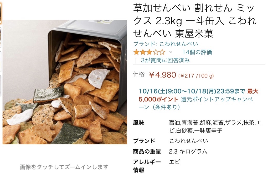 Amazonで注文した「高級せんべいの割れたのミックス」の一斗缶詰は届いたし。