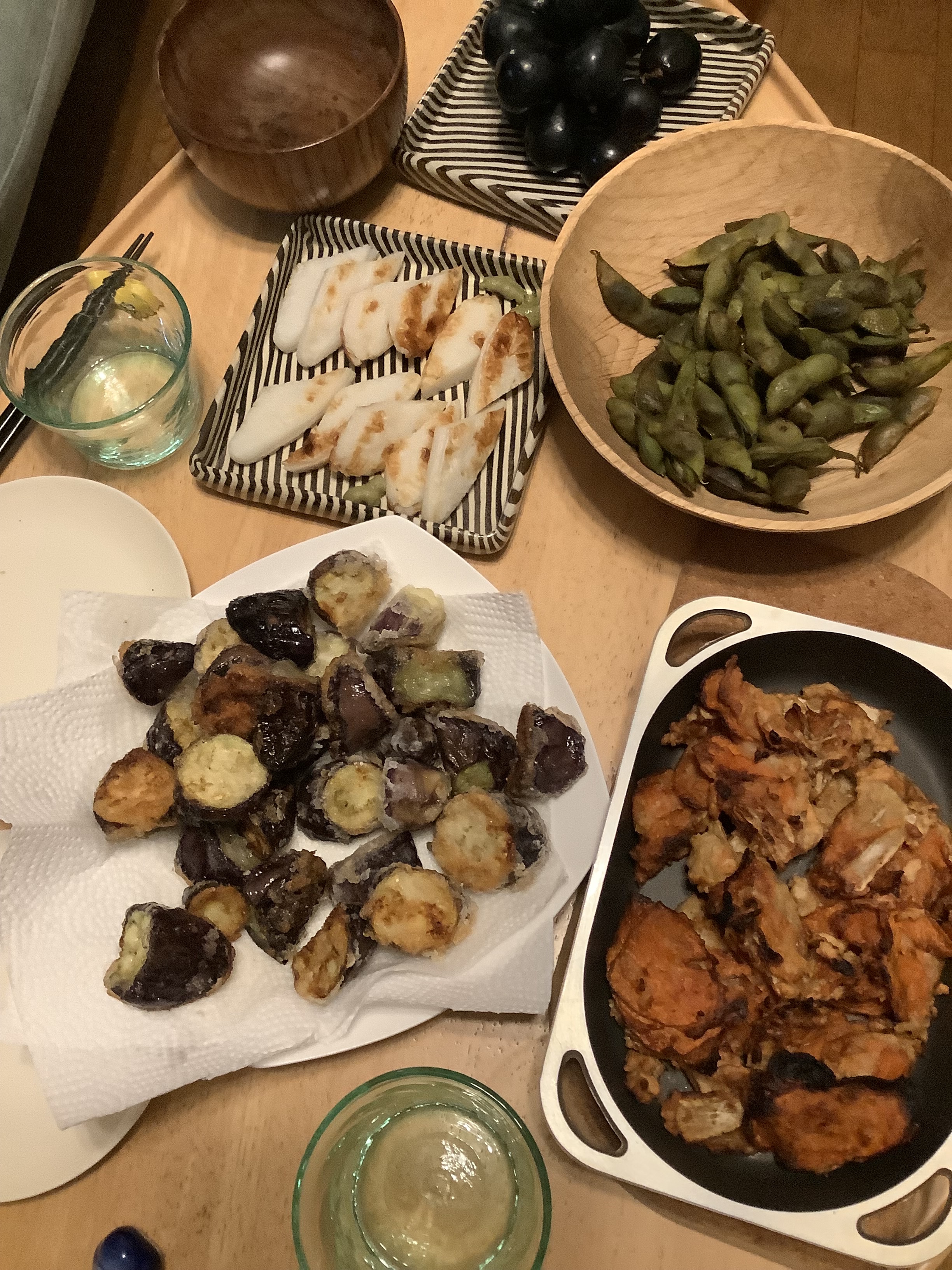 さて、今日の夕ご飯は、秋茄子をおろしニンニクと白だしで味つけて、片栗粉つけて揚げ焼きするか。