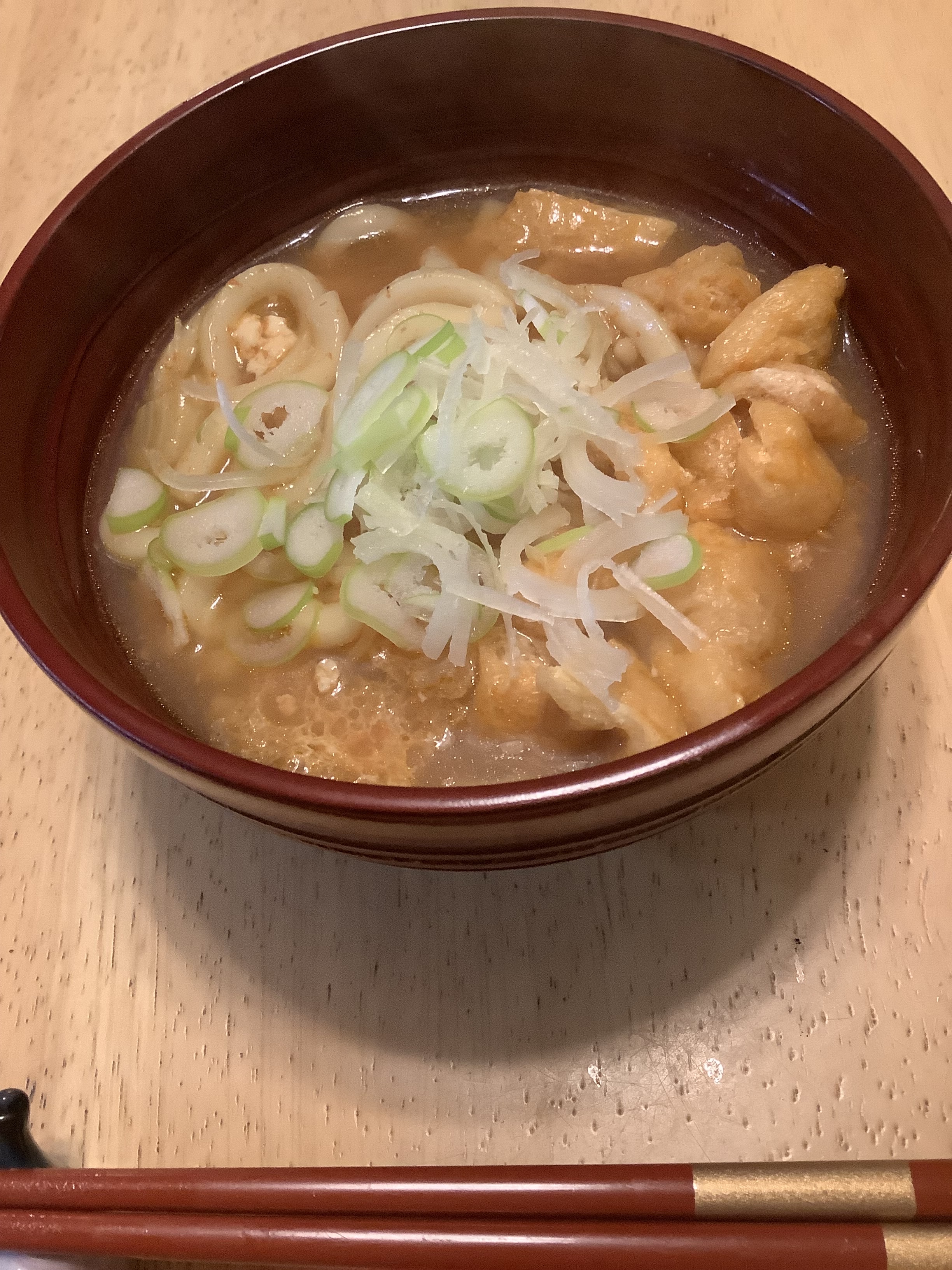 お揚げとネギ入り半うどん!