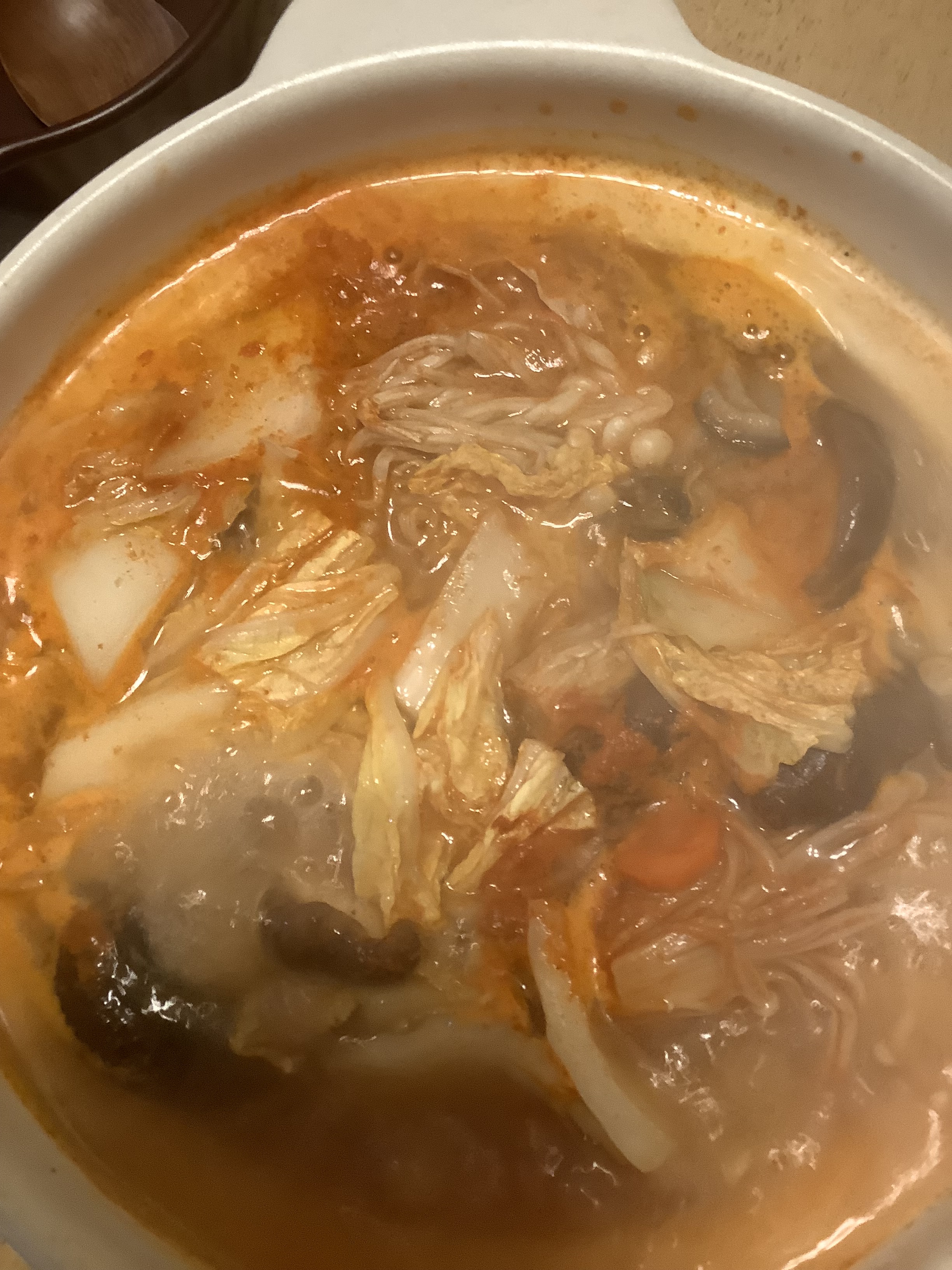 それから市販のレトルトの辛味鍋のスープを使用して、お鍋。