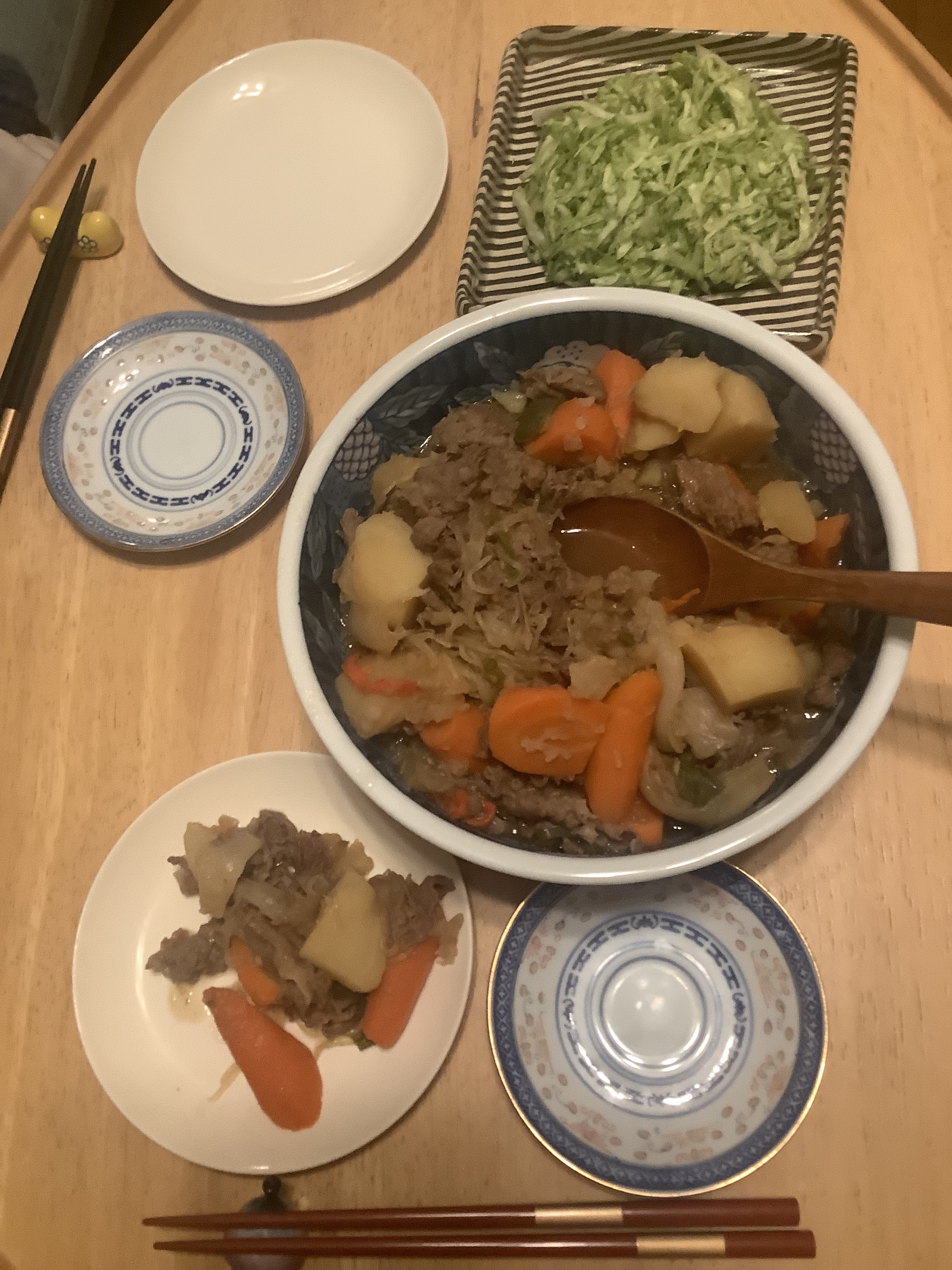 12月23日の夕食も、木村万紀子先生の和食黄金比率の調味料利用の肉じゃが。