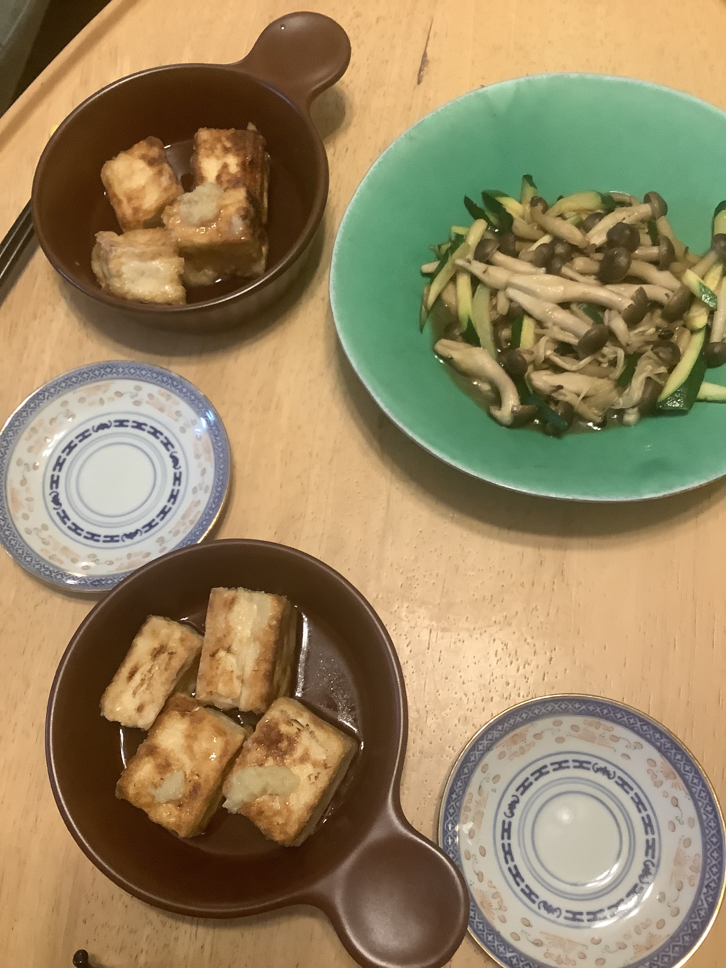 しめじとエノキとズッキーニの炒め物は、夫のリクエスト。一昨日に作ったキノコの炒め物が美味しかったからって。