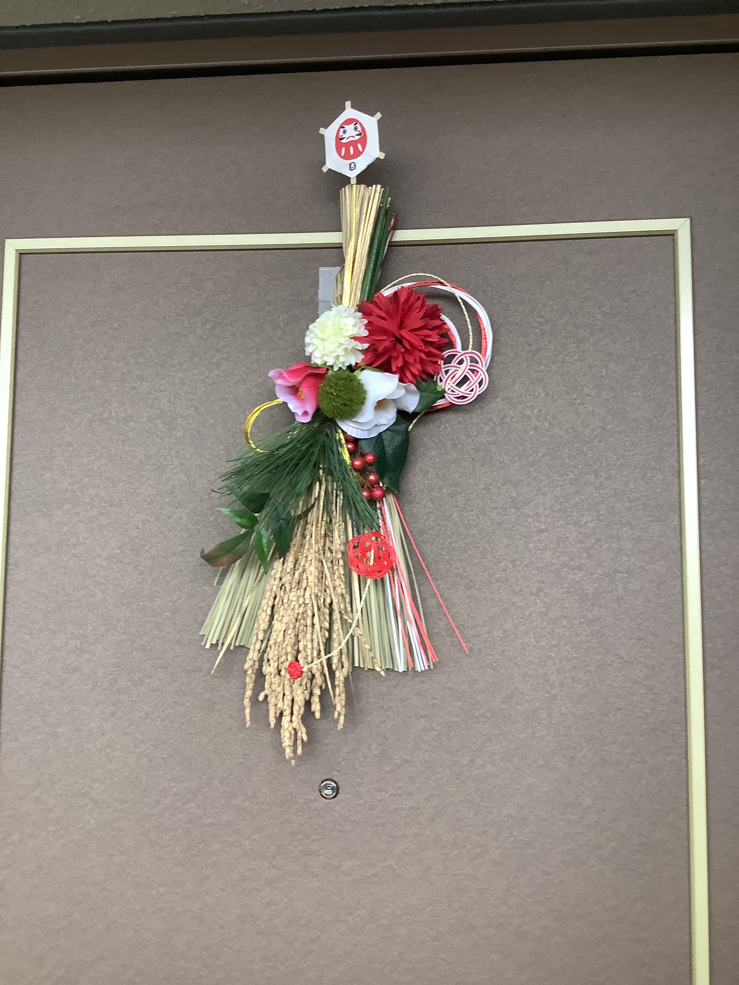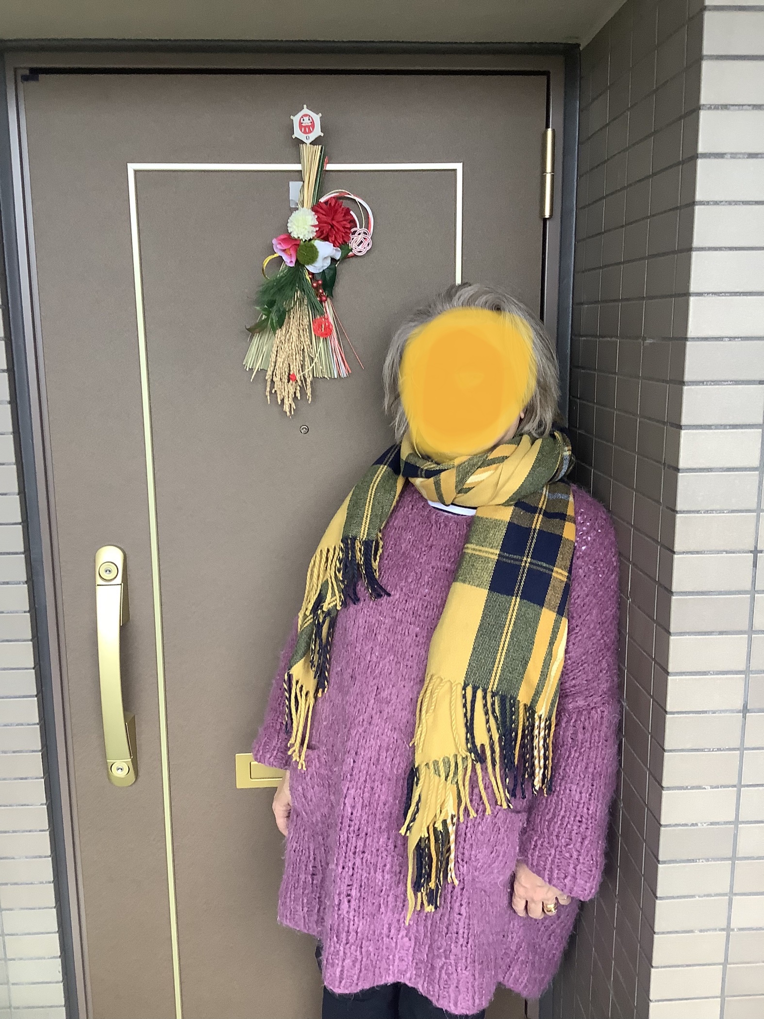 帰宅したら、すぐに玄関ドアにお正月飾りをつける。