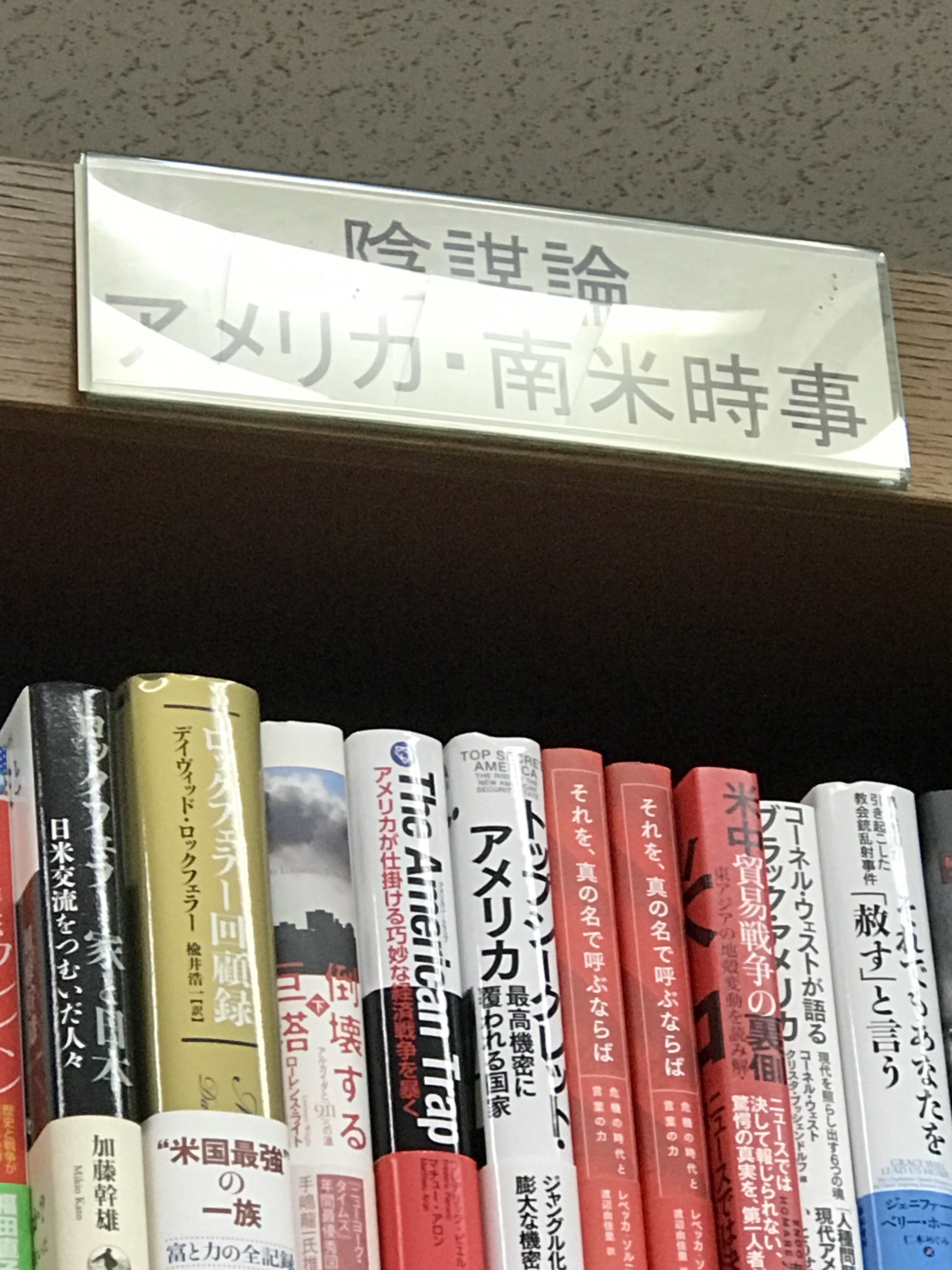 最近は、名古屋の書店にさえ、「陰謀論コーナー」があるよ。