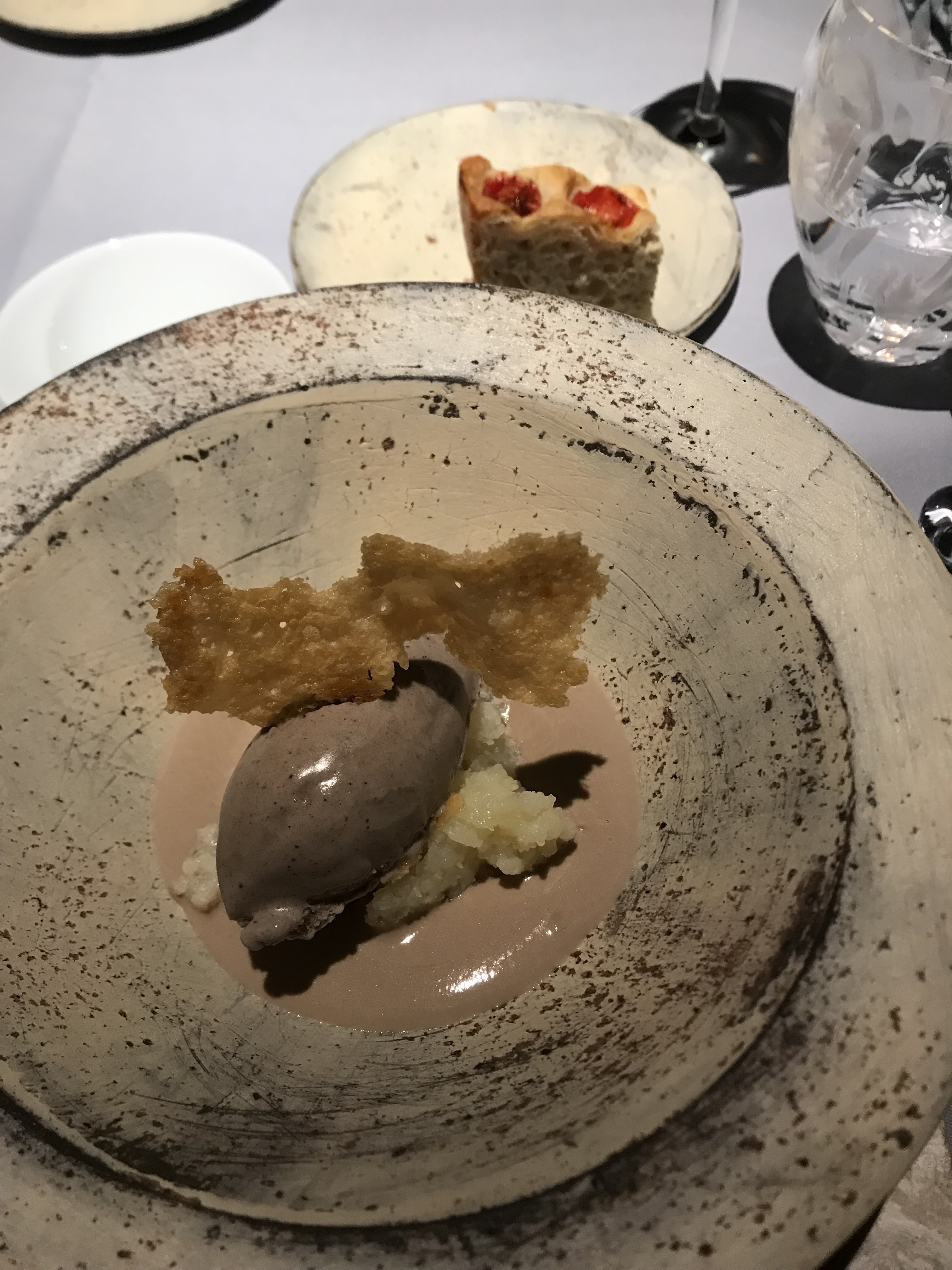 もううううう……このお料理が最高の最高でした!マッシュルームのクリームソースが絶品。マッシュポテトも最高。トリュフのジェラートの香り高さ。チーズのお煎餅の塩気が良いアクセントです。