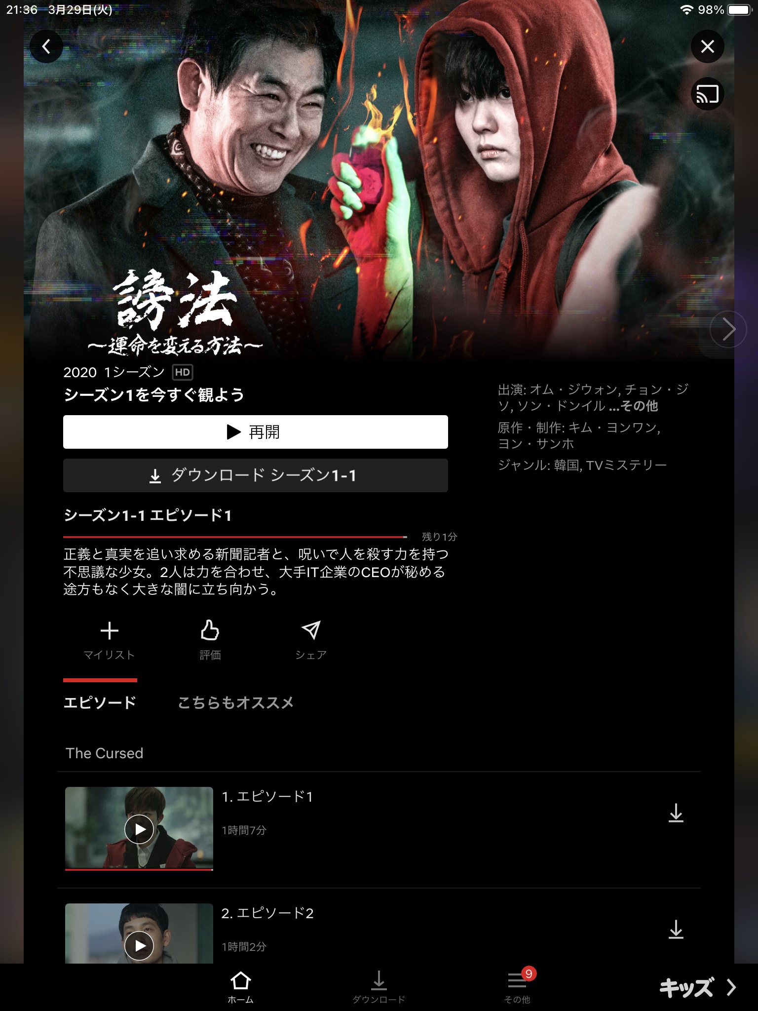 インターネットのアプリから発せられる呪いのエネルギーを題材にした韓国のドラマ。