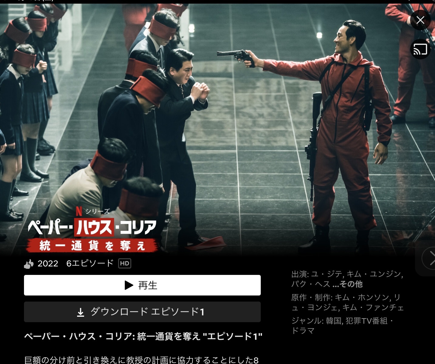 ちょっと現実逃避しましょ〜〜かということで、またもNetflix配信の韓国ドラマの『ペーパーハウス・コリア 統一通貨を奪え』ってのを視聴しました。