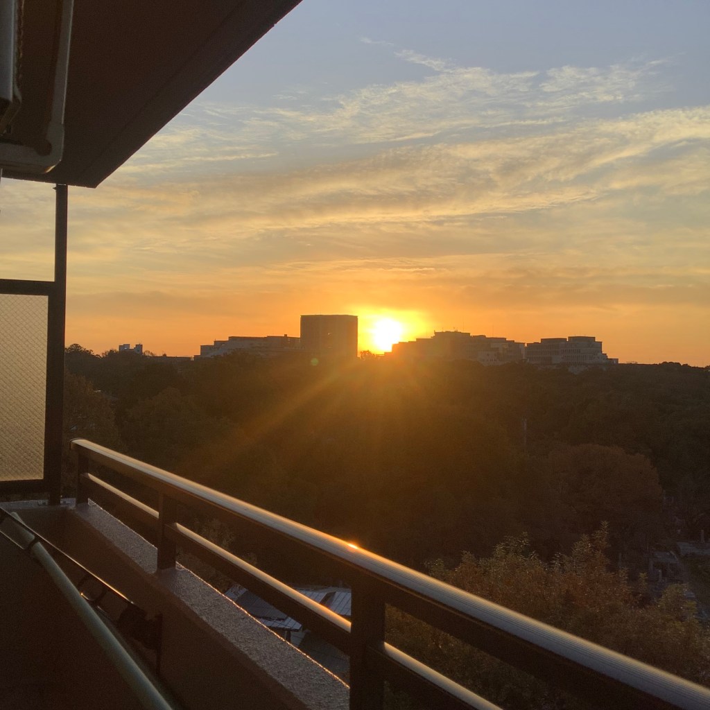12月の夜明けって、どこかやっぱり寂しいね。夕陽みたいな朝日だわん。