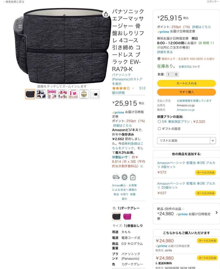 試しに、パナソニックの腰マッサージ機を購入することにしました。高いなあ。数日間悩んじゃったよ。