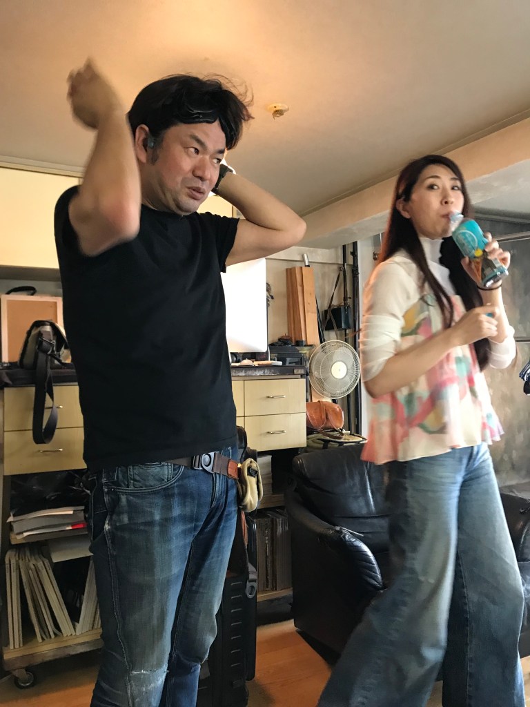 休憩時間の塚本ダイさんと助手の中沢さんです。