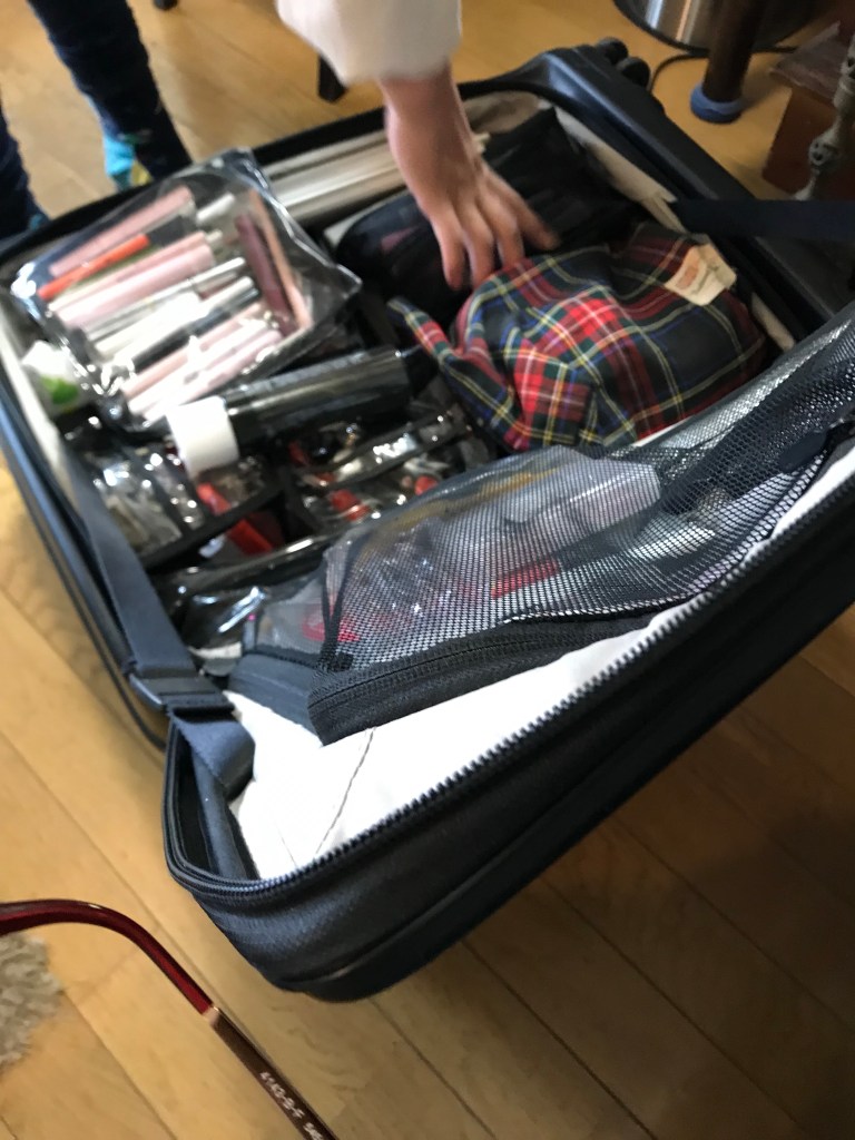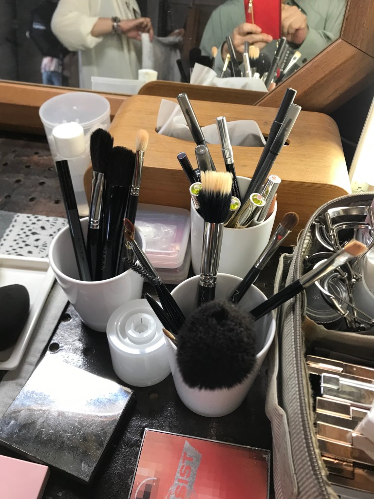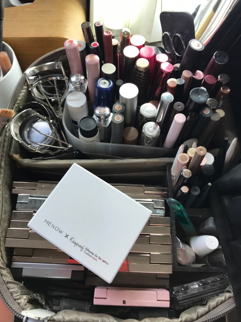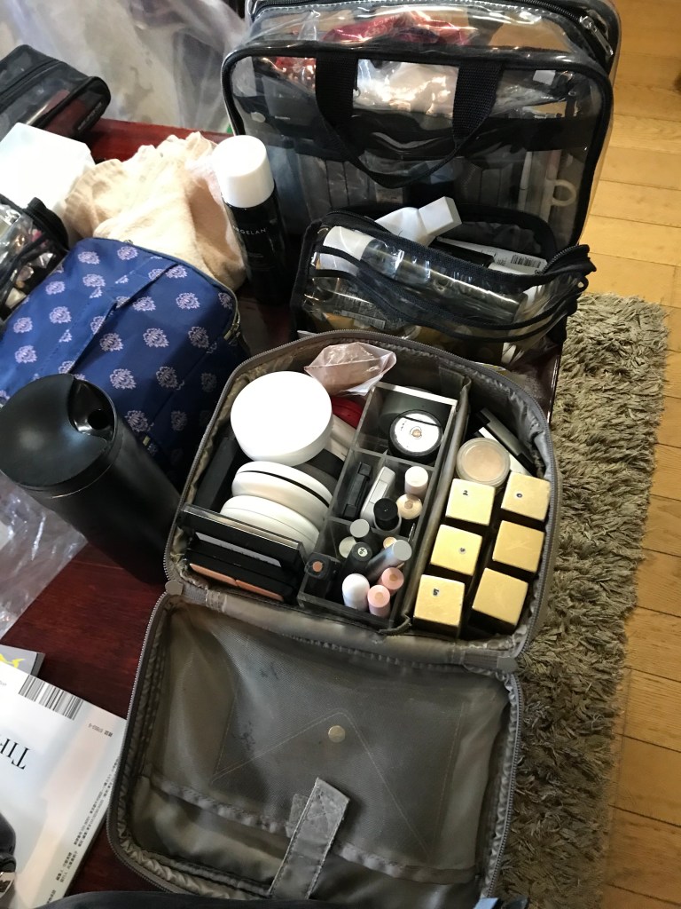 まず、ヘアメイクの方の道具がすごい。これだけの量のお化粧品をスーツケースに入れて移動するフリーランスのヘアメイク・アーティスト!