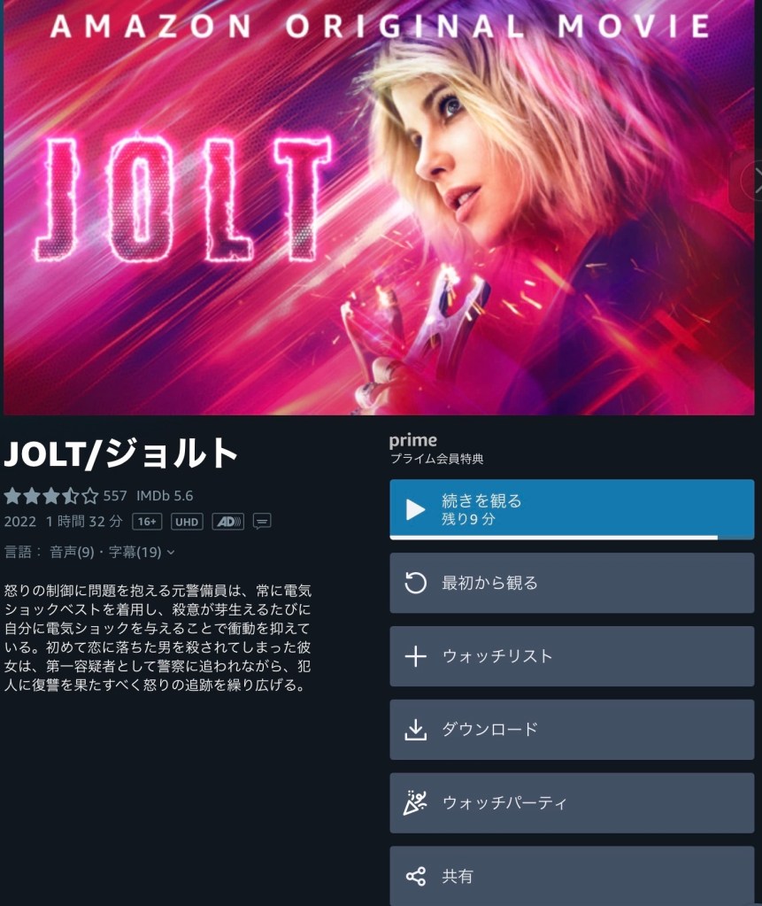 amazon prime videoは、一見アホみたいな映画の中に面白いのがある。『ジョルト』なんて、良かったですよ。